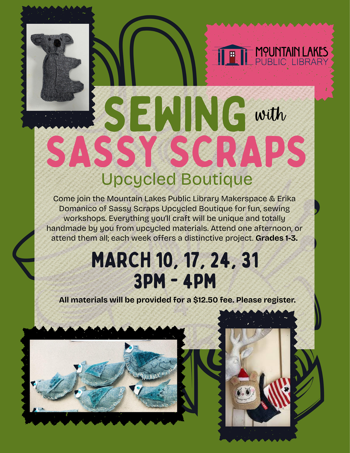 The program was so popular, we had to bring it back! Create something wonderful while learning how to sew. Come for one afternoon, or come for all four; each project is unique.