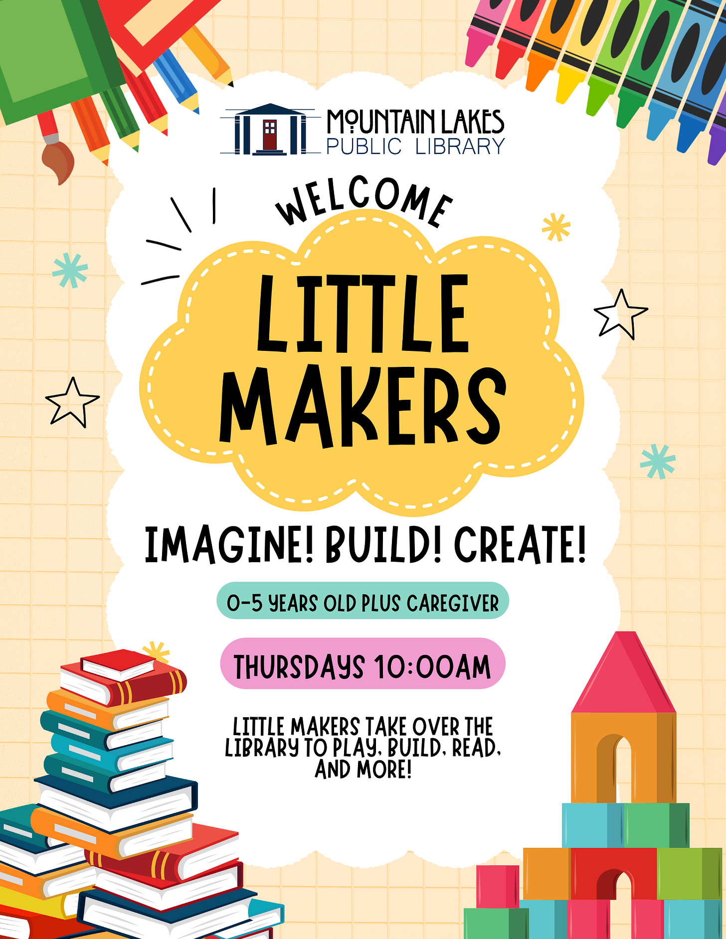 Upcoming EventsJoin us at the Mountain Lakes Library for unique programming for all ages.Christina KellyJan 20, 2026ShareSew Much Fun!Express your creativity through textile arts! Sew Much Fun!Join us tomorrow afternoon for sign, stories, songs, and fun!ASL Story TimeCelebrate the Year of the Fire Horse!Celebrate the Year of the Horse!Weekly programming is great programming!Register for MakerspaceMakers Make It Possible!Register for ChessLittle Makers Take Over the Library!Get Your Tech Questions Answered!Go behind the scenes...The Makerspace Beyond Mountain Lakes!Previous